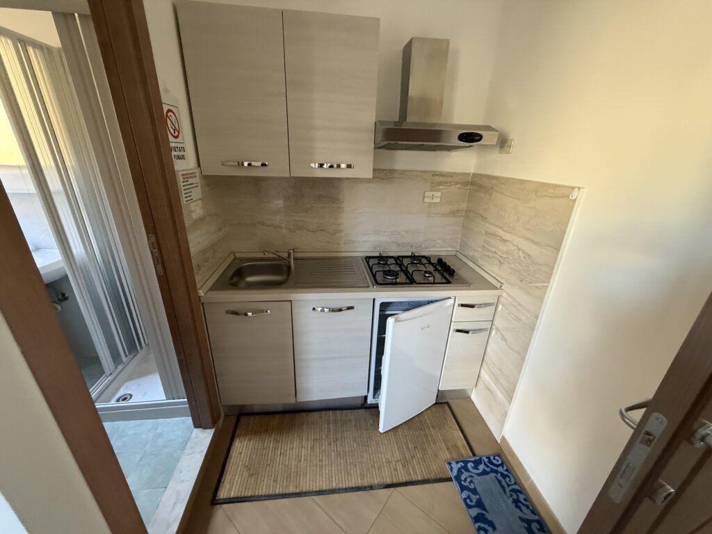 ingresso su salottino con cucina attrezzata,